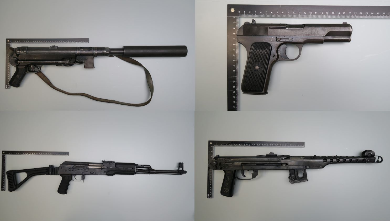 Skjutvapen beslagtagna i samband med förundersökningen. Bild: Polisen