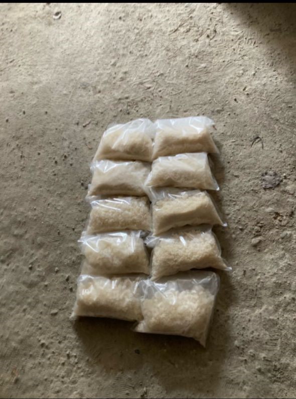 Poliisi takavarikoi kesällä 2025 maastokätköstä muovipussin, jonka sisällä oli yhteensä 1968 grammaa Alfa-Pvp huumausainetta useassa vakuumipussissa.