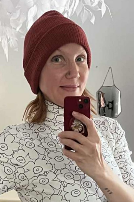 pituus 180cm, hoikka, punertavat hiukset, nenäkoru, tummansininen polveen saakka ulottuva untuvatakki, vaelluskengät ja kirjava reppu (kuva ohessa).