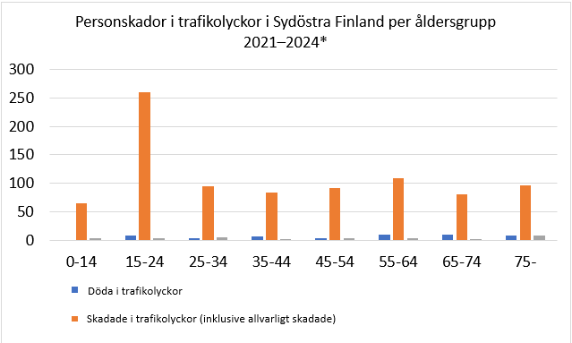 Trafikolyckor bland unga är ett stort bekymmer över hela Finland, även i Sydöstra Finland. Mer än 250 unga personer har skadats i trafikolyckor i Sydöstra Finland mellan 2021 och 2024. I andra åldersgrupper är antalet skadade runt hundra, alltså betydligt färre. Unga förare har också omkommit till följd av olyckor.