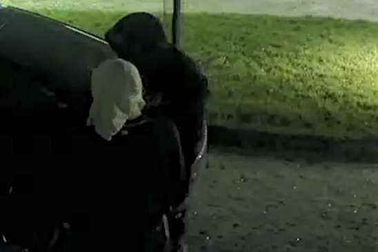 Teoista epäillään kahta henkilöä, jotka tallentuivat valvontakameraan. Poliisi pyytää havaintoja kahdesta henkilöstä, jotka liikkuivat Kauniaisissa lauantain ja sunnuntain välisenä yönä. Molemmilla henkilöillä oli yllään mustat vaatteet. Toisella heistä oli päässään myös musta huppu, ja toinen oli peittänyt päänsä valkoisella kankaalla.