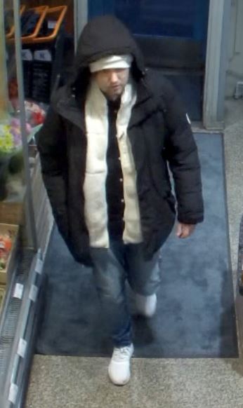 Epäillyllä oli tekohetkellä yllään siniset farkut, valkoiset kengät ja valkoinen päähine, jonka päälle oli vedetty mustan toppatakin huppu. Takin alla hänellä oli valkoinen avonainen paita ja sen alla musta kauluspaita, jossa vaaleat napit. Miehellä oli selässään sininen reppu.
