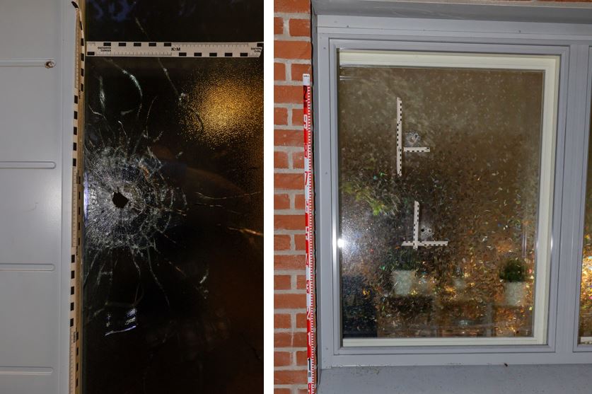 : Helsingin Lassilassa sijaitsevan asunnon oven ja ikkunan lävitse ammuttiin useita laukauksia. Kuva: Poliisi