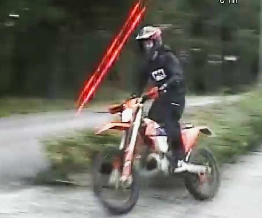 Polisen i Östra Nyland polis ber om hjälp för att identifiera och hitta föraren av den orangea crossmotorcykeln som syns på bilden.